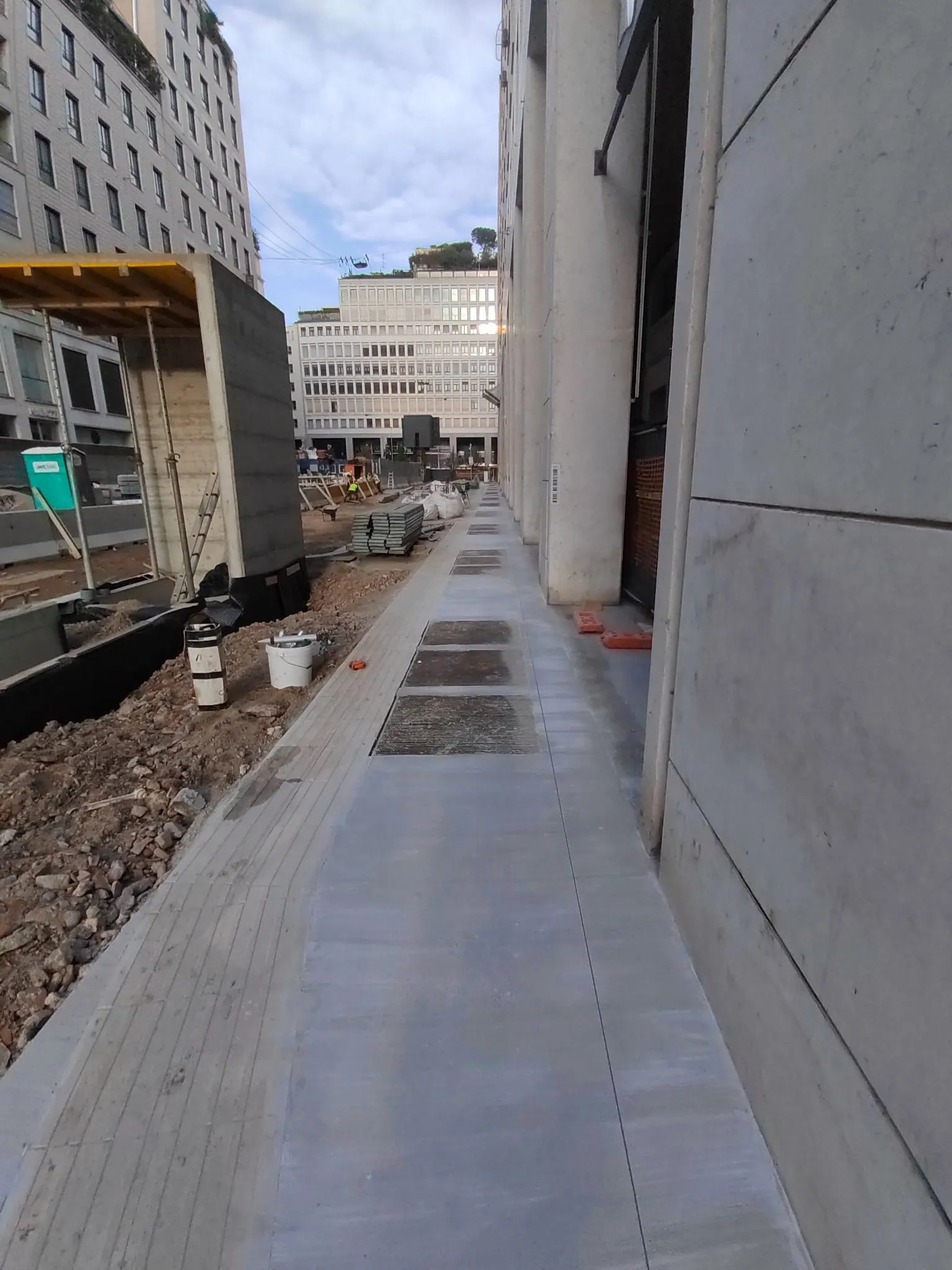Cantiere in corso per il progetto nato nel 2004 relativo al parcheggio interrato di via Borgogna, dove per conto di SALC, siamo attualmente impegnati nella fornitura e messa in opera delle pavimentazioni in calcestruzzo per i marciapiedi esterni. Dopo il cantiere M4 San Babila, siamo testimoni della trasformazione di Milano in questa zona. Una metamorfosi e una riqualificazione delle grandi aree urbane che ci vede impegnati su più fronti.