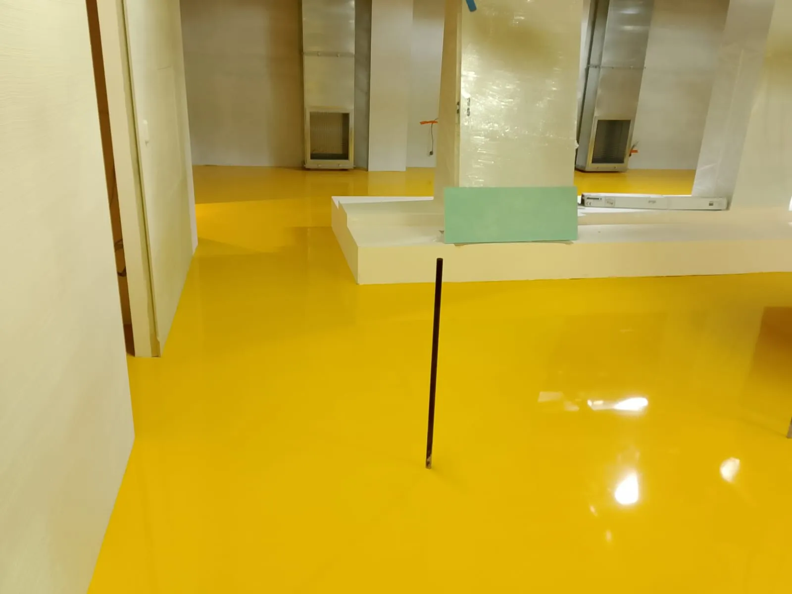 Rivestimento autolivellante epossidico, non a solvente, con finitura lucida , colore giallo, spessore 2,5 mm.
