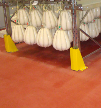 Il pavimento delle aziende che trattano il latte, dai caseifici (aree di produzione e stagionatura, showroom vendita) alle centrali di raccolta latte, deve soddisfare i severi requisiti imposti dai disciplinari HACCP.