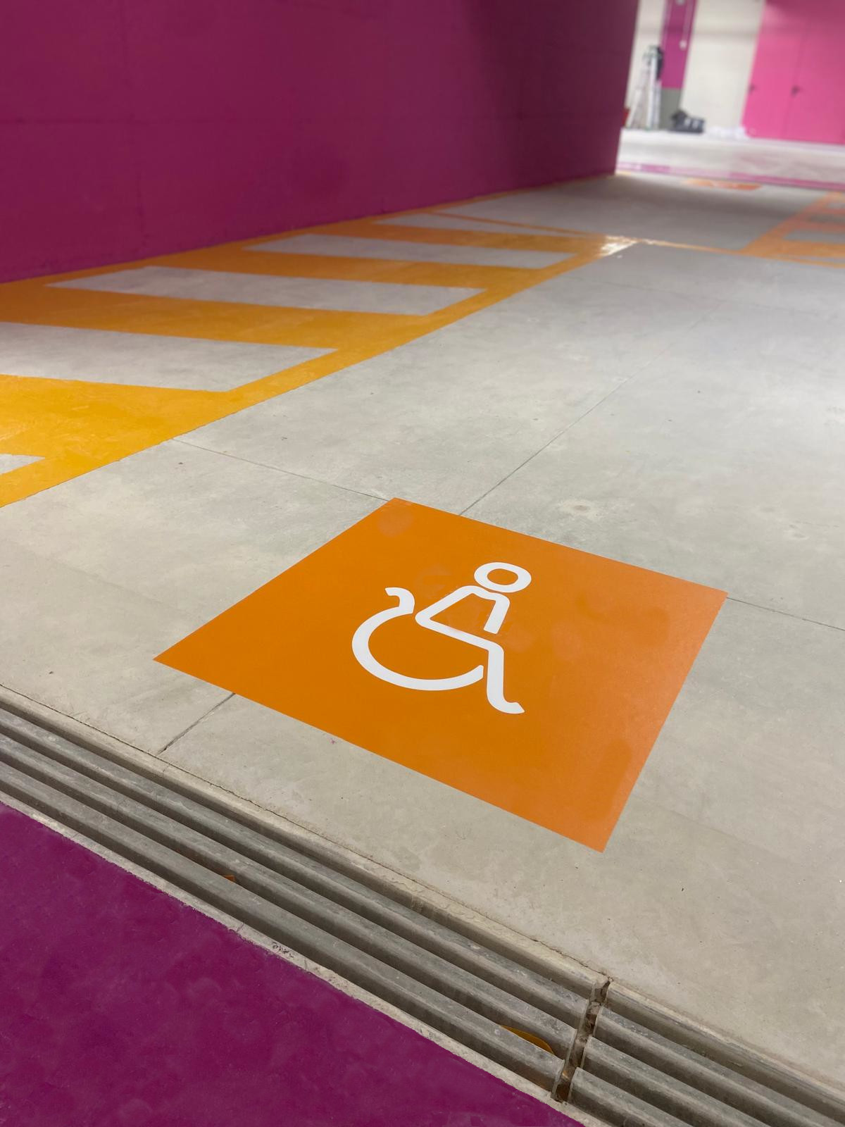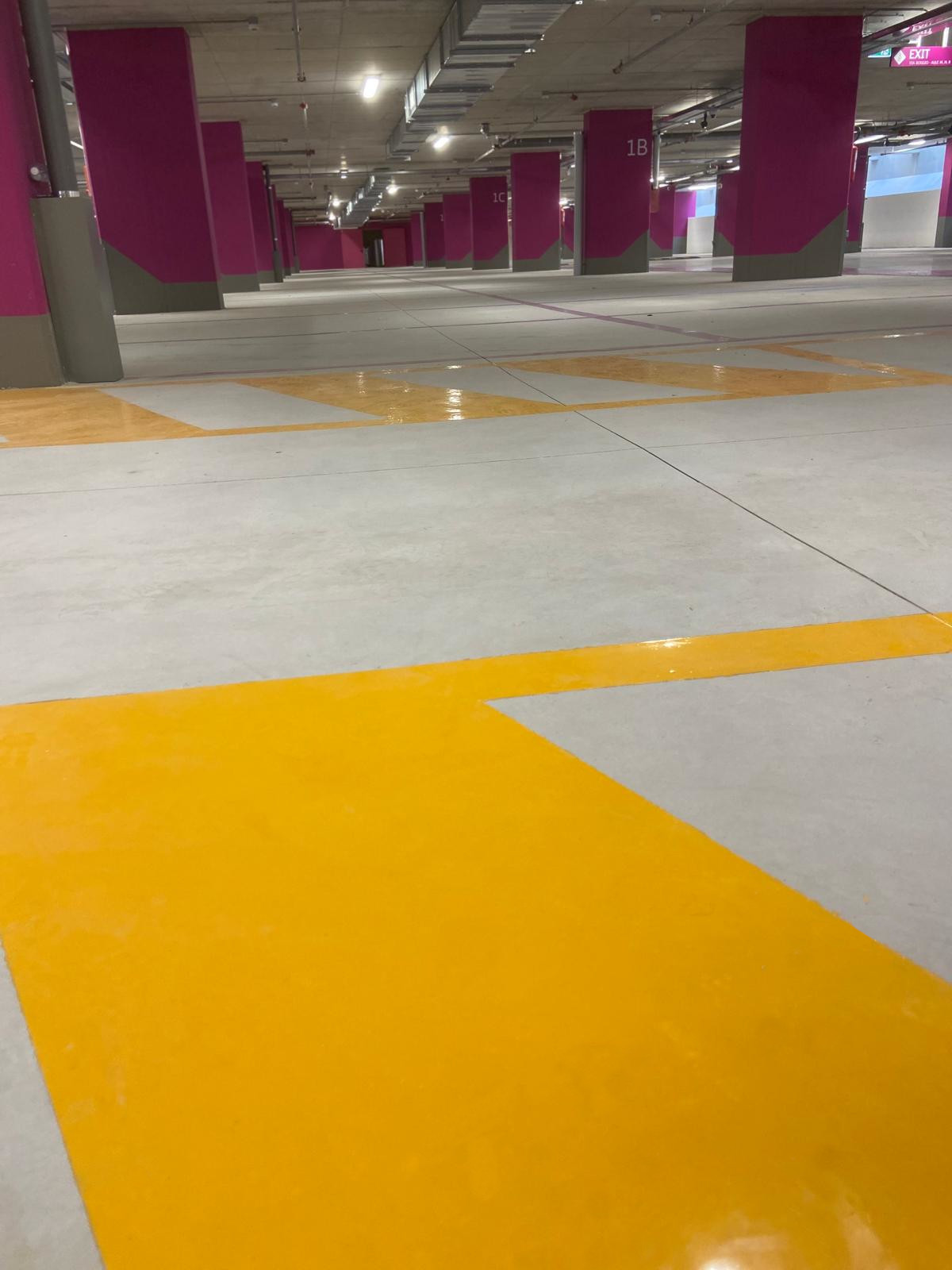 Turin Polytechnic Parking: resin pathways, signage and, painting by Prima